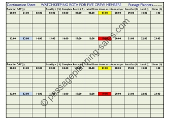 Watchkeeping Rota for five crew members - Continuation Sheet.